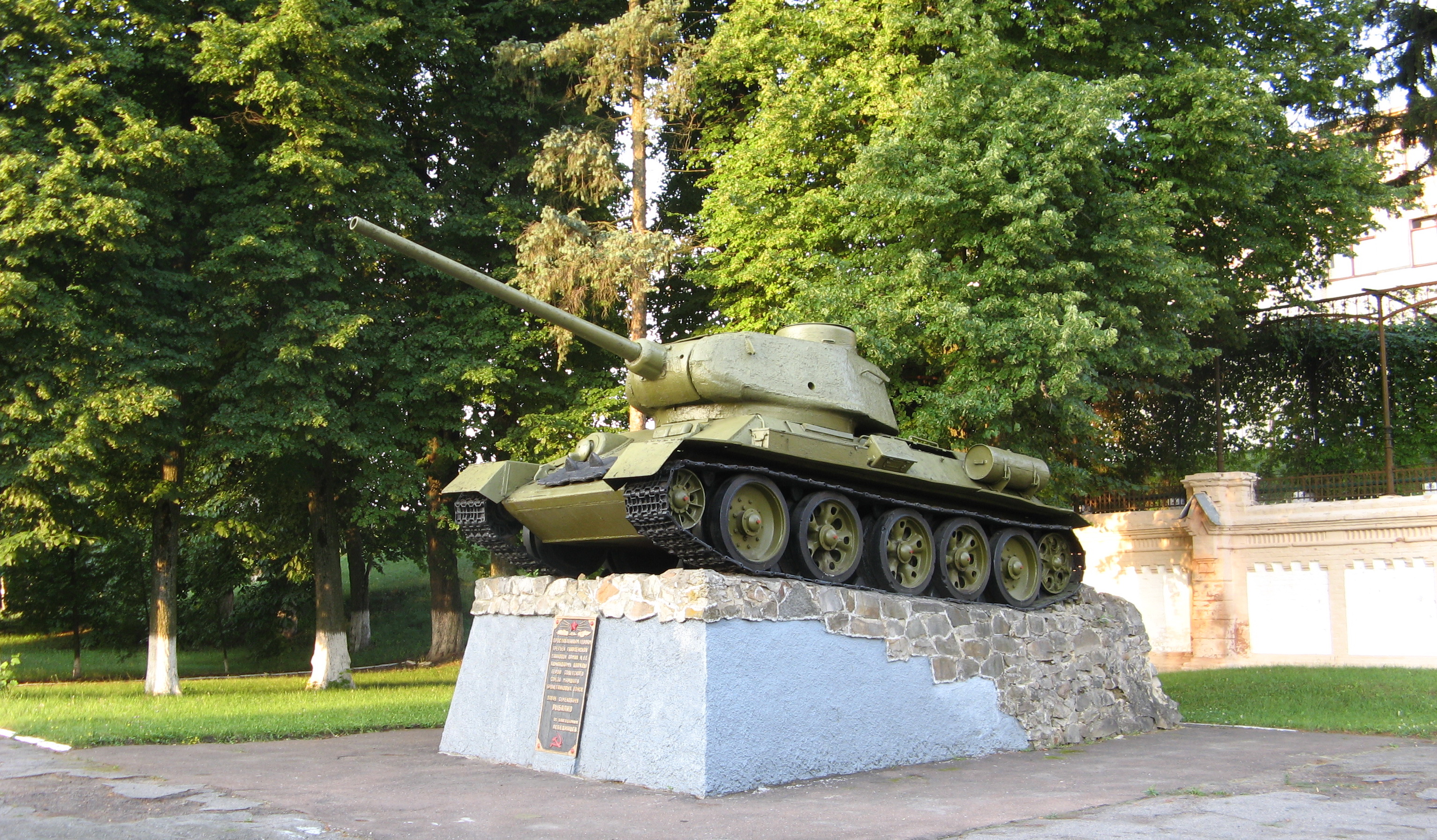 Характеристика: радянський середній танк періоду Другої світової війни, випускався серійно з 1940, був основним танком РСЧА до першої половини 1944, коли на зміну йому прийшов танк модифікації Т-34-85. Наймасовіший середній танк Другої світової війни. Танк Т-34 зробив величезний вплив на результат війни і на подальший розвиток світового танкобудування. Завдяки сукупності своїх бойових якостей Т-34 був визнаний багатьма фахівцями та військовими експертами одним з найкращих танків Другої світової війни. Танк Т-34 є найвідомішим радянським танком та одним із найбільш упізнаваних символів Другої світової війни. До теперішнього часу збереглася багато цих танків різних модифікацій у вигляді пам'ятників та музейних експонатів.